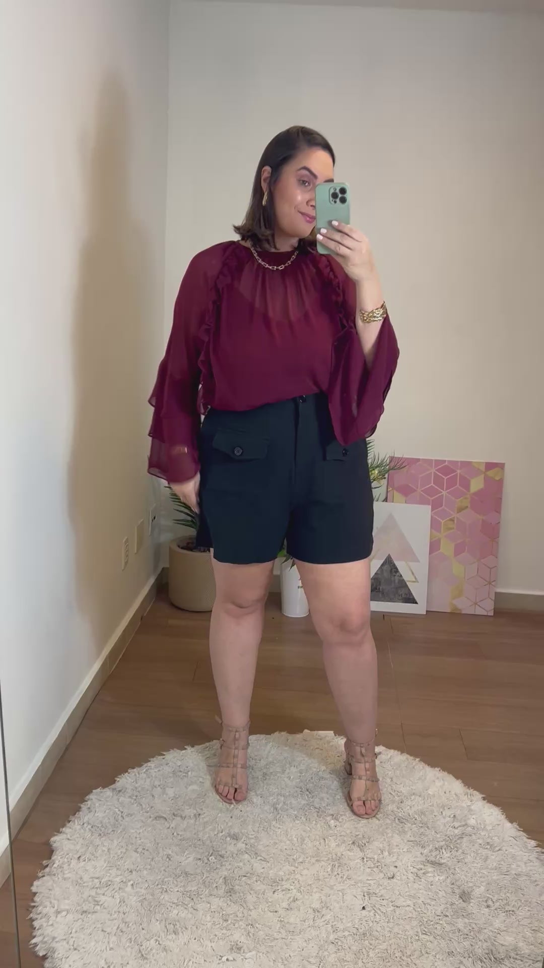 - mangas compridas, largas e soltas estilo boho com babados