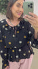 Com decote em V e amarração frontal, ela valoriza o colo e garante um toque moderno e feminino. O elástico na cintura modela suavemente a silhueta, enquanto as mangas longas com elástico no punho e babado dão charme e delicadeza ao visual.
