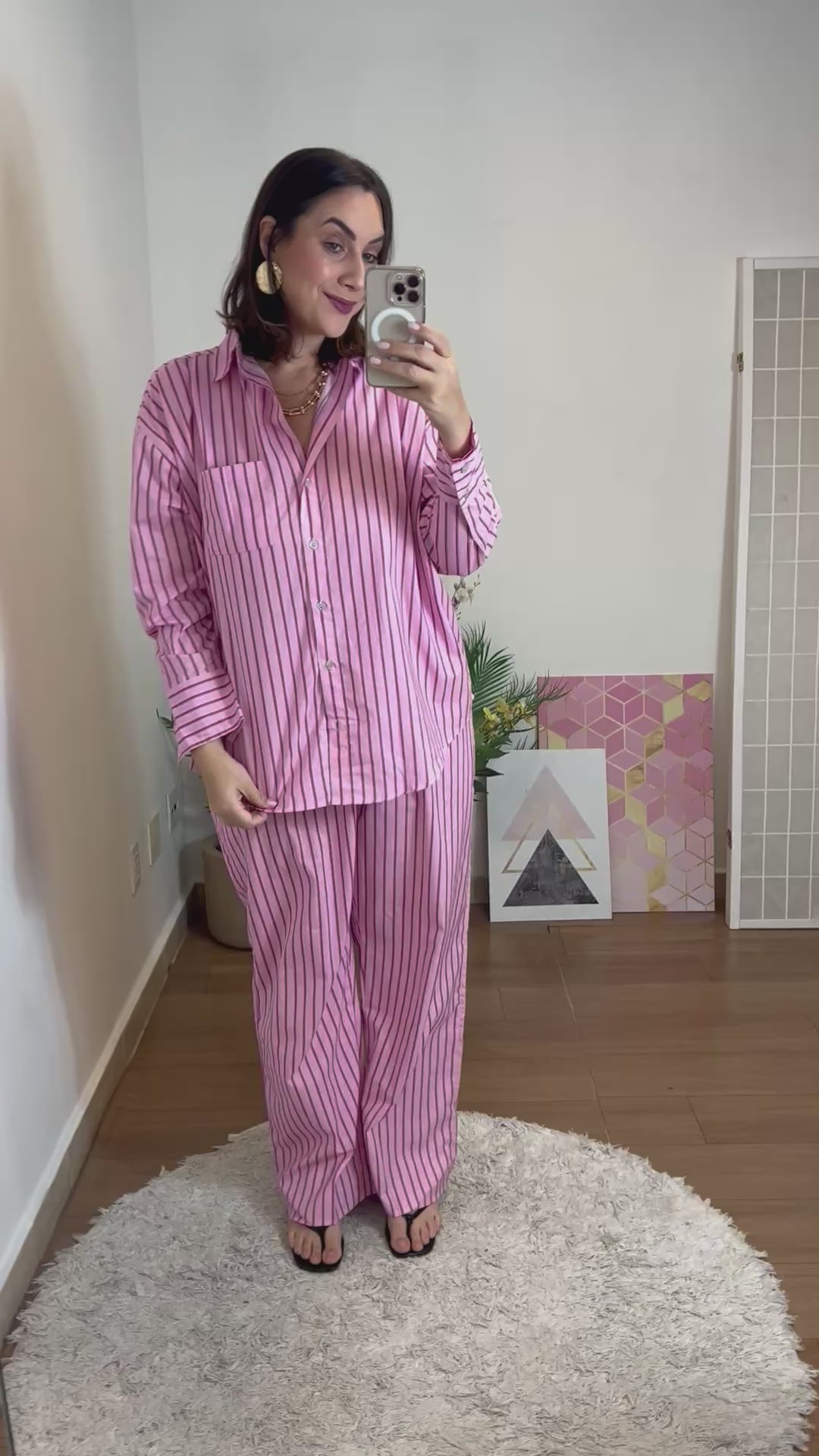 A Camisa Janaina é a peça que combina conforto e estilo em um só look. Feita em tricoline listrado 100% algodão, ela tem um toque leve e respirável, ideal para o dia a dia. Sua modelagem oversized garante caimento moderno, enquanto os punhos ajustáveis por botões e a abertura frontal trazem praticidade. Os bolsos laterais frontais completam o design, deixando a peça ainda mais versátil.