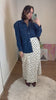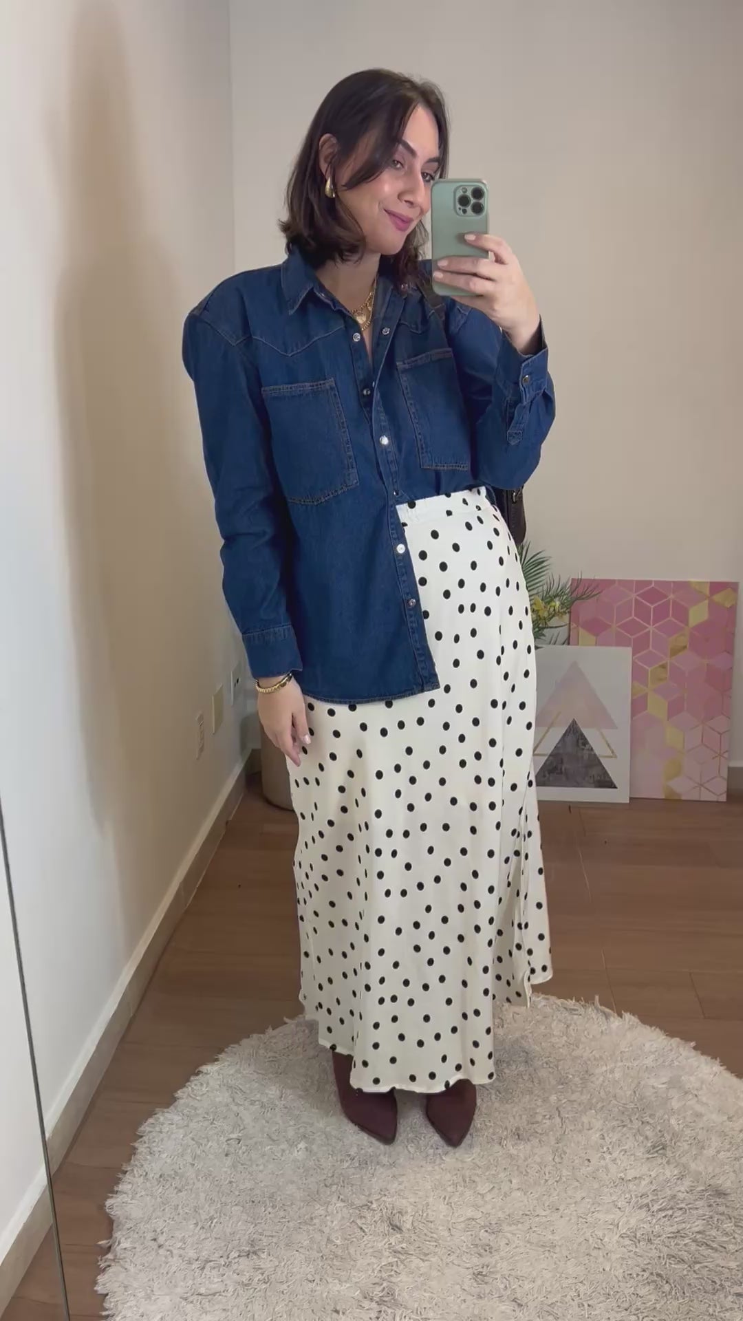 Saia midi alongada com elástico na cintura, proporcionando conforto e ajuste perfeito.