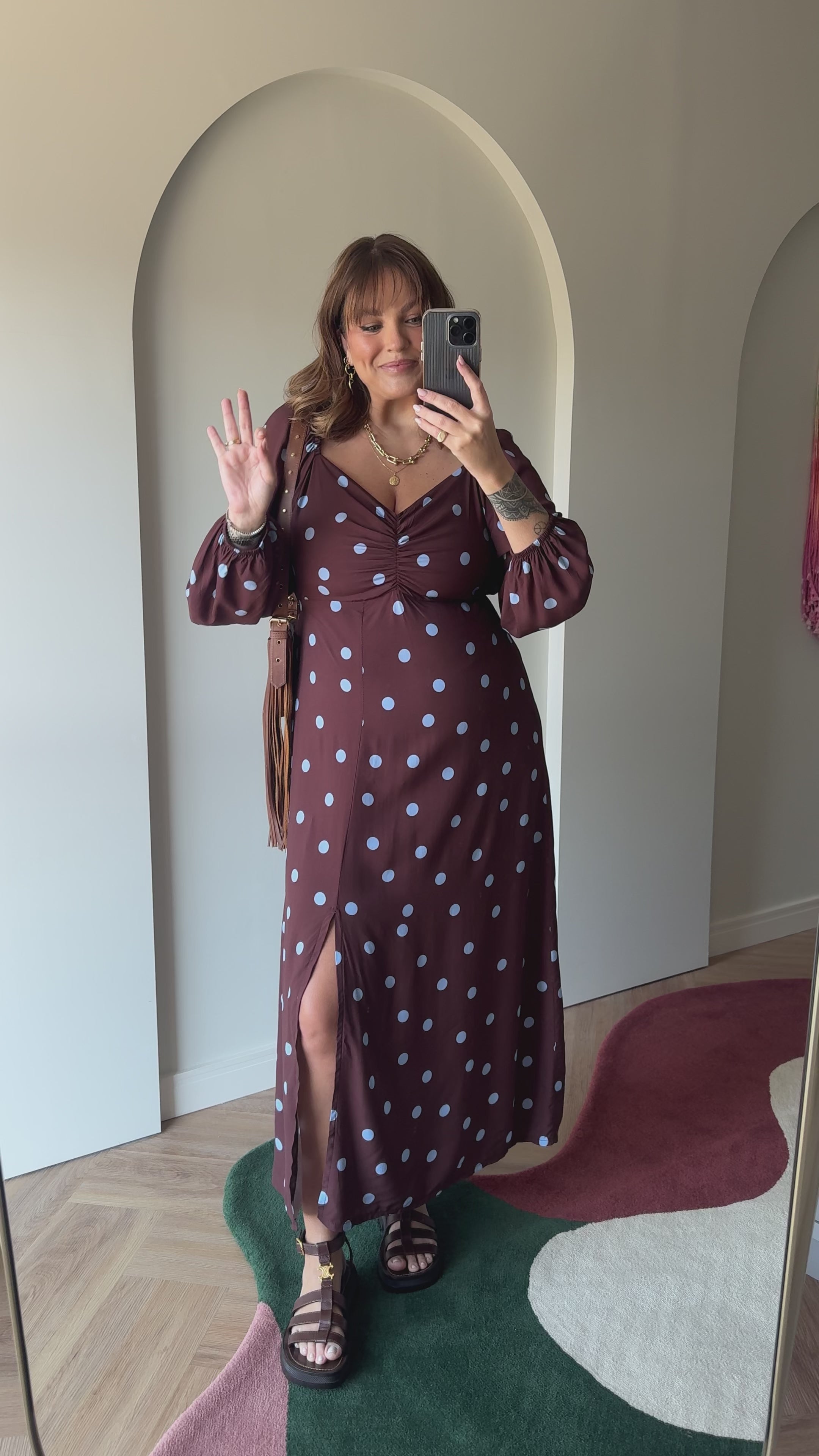 O decote princesa valoriza o colo com sutileza, enquanto as mangas 7/8 bufantes trazem um ar romântico e elegante. O comprimento midi confere sofisticação, e a fenda lateral adiciona movimento e um charme moderno à produção.